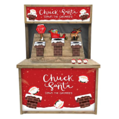 Add festive fun to your event with our Chuck Santa Down the Chimney side stall game! Our red and white wooden stalls are indoor use only, with prizes and staff available as extras. Perfect for Christmas parties, winter wonderlands, shopping centres, school fairs, and corporate events.