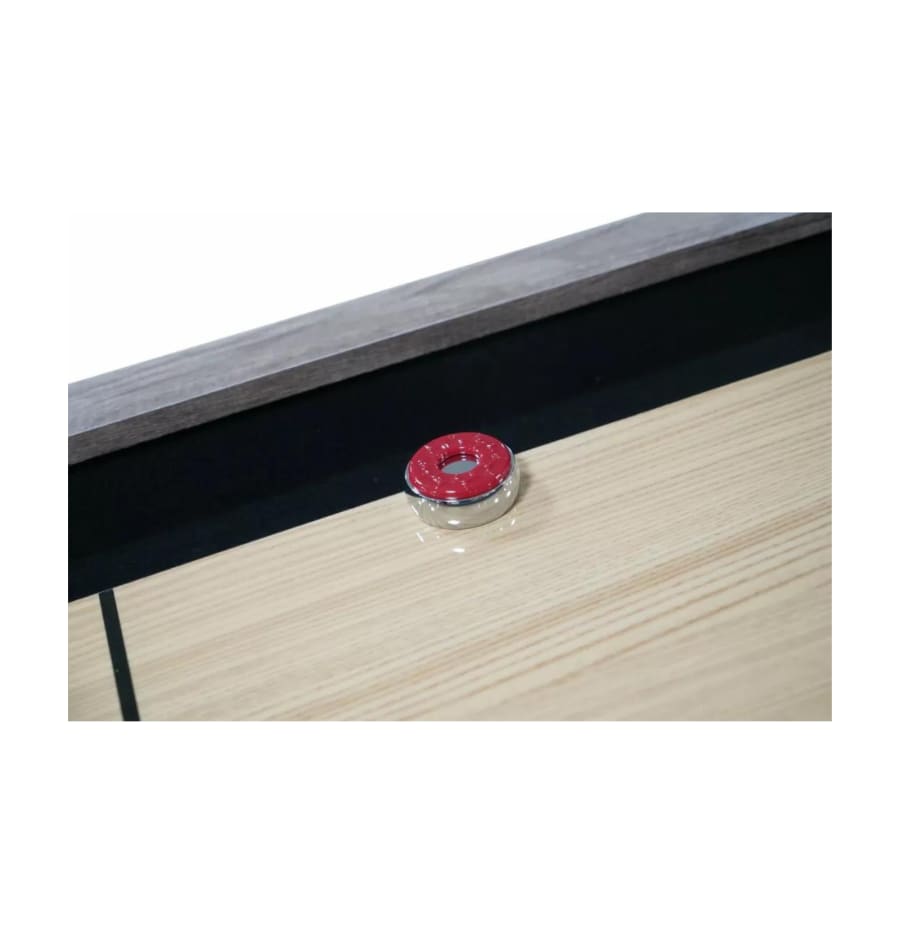 Each player has four weighted discs, which are slid from one end of the shuffleboard alley to the other. The aim is to land the discs in the scoring zones at the far end of the board without them falling off the edge. Simple to understand yet highly tactical, shuffleboard is a game of skill, precision, and strategy, keeping players engaged and encouraging friendly competition.
