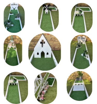 📩 Complete the enquiry form or 📞 call 07951 845453 to receive a tailored quote for White Wedding 9 Hole Mini Crazy Golf Course Hire.